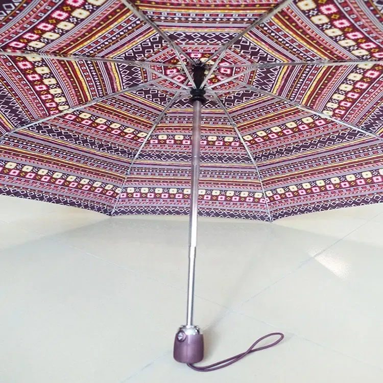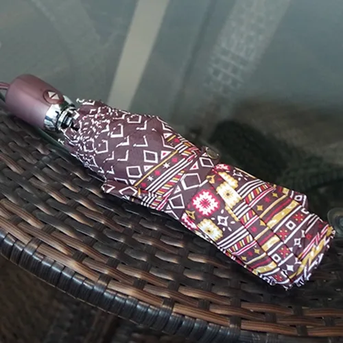 L'ombrello femminile stampato in stile etnico combina l'estetica tradizionale con la praticità moderna, presentando principalmente le seguenti caratteristiche. In primo luogo, in termini di design della superficie ombrello e caratteristiche dei motivi, gli asiatici tendono a scegliere elementi estetici orientali. La superficie ombrello presenta comunemente temi in stile cinese, come fiori di pesca disegnati a mano, peonie, antichi dipinti del paesaggio, figure del cortile e altri stili di pittura a inchiostro, abbinati a immagini classiche come pagodas e padiglioni. Alcuni design incorporano i totem di pavoni ed elefanti del gruppo etnico Dai o modelli di ghiaccio simmetrici della stampa di cera Buyi, che mostra diverse culture etniche.